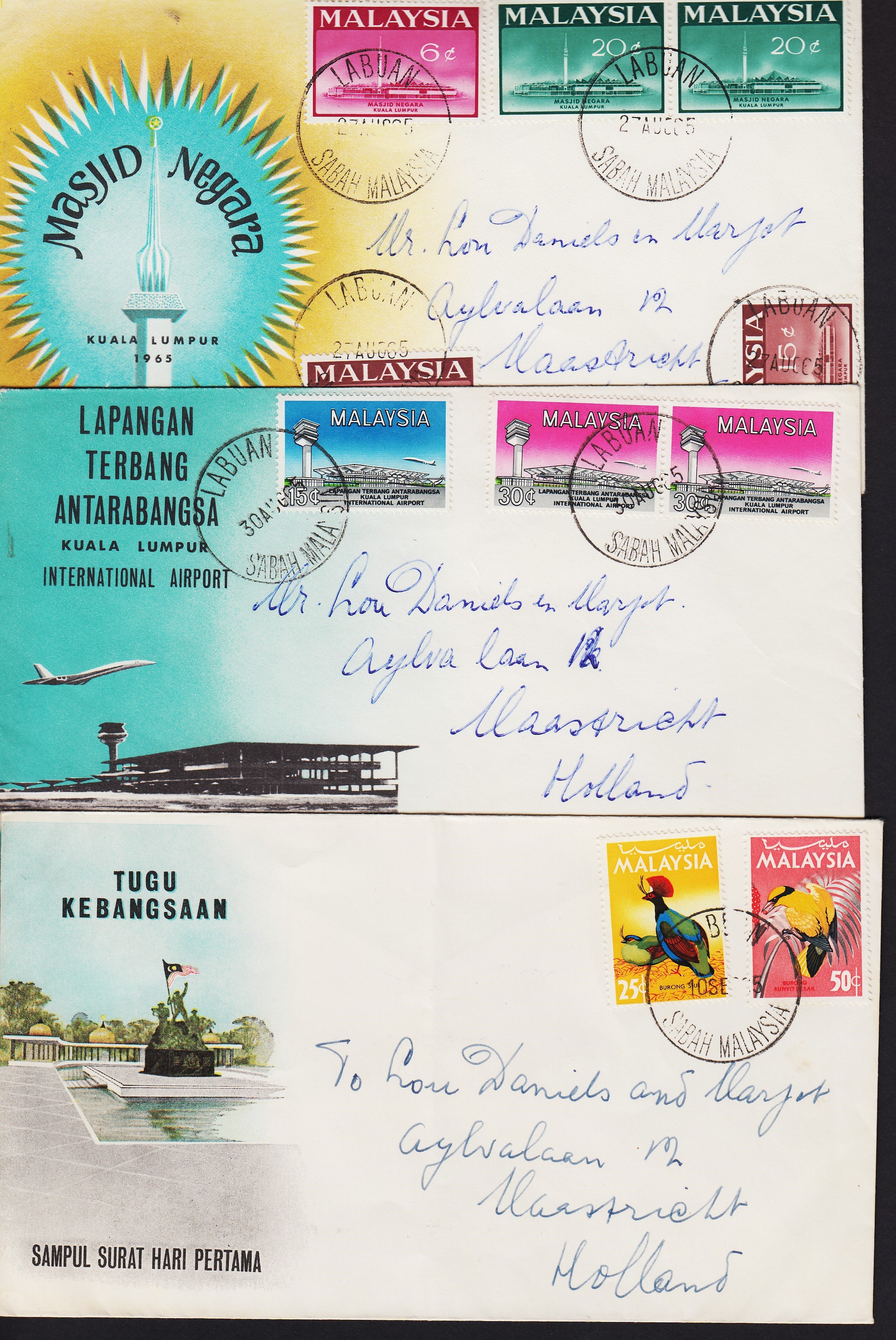 3 FDC's 1965 blanco