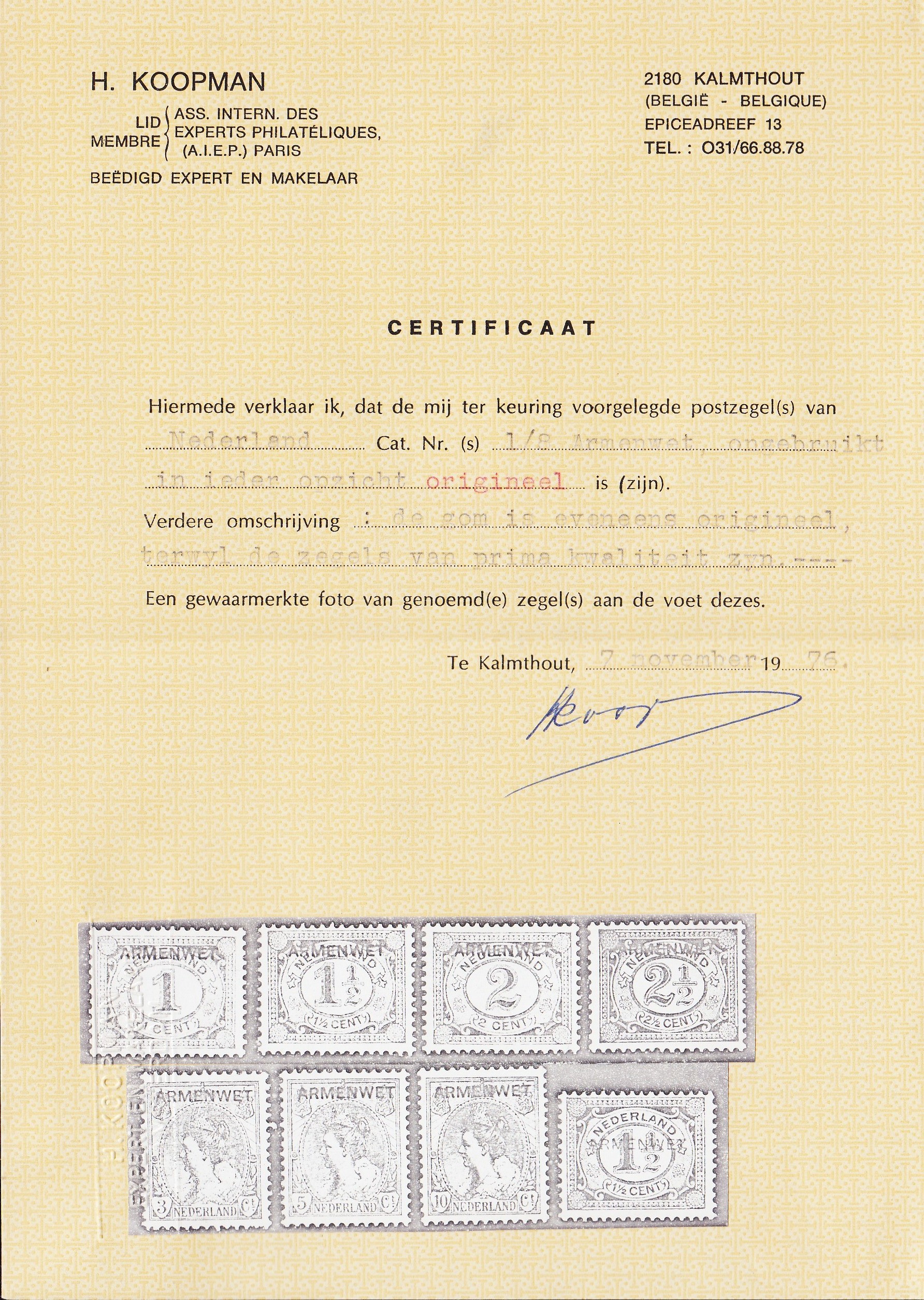 D1-8 ongebruikt / postfris met certificaat